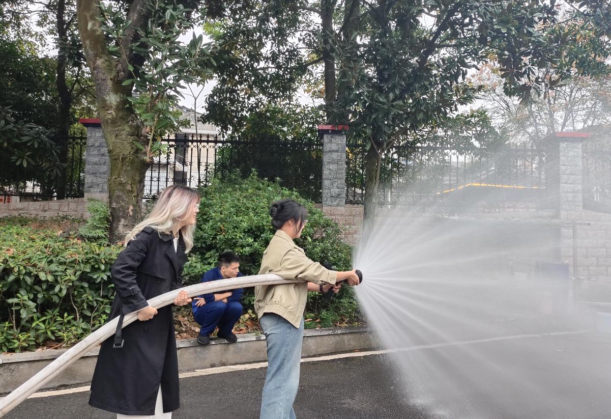 学生体验消防灭火器使用