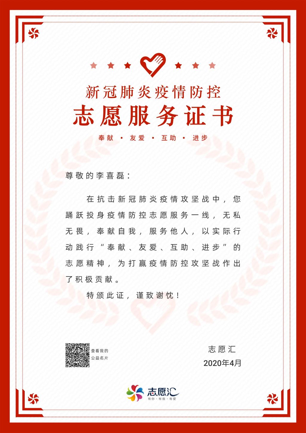 2月25日,在共青团中央关爱抗役一线医务人员子女和因抗役致困青少年的捐款通道正式发布的第二天,作为学生干部的李喜磊号召自己部门的同学们参与捐款,并以身作则捐出了自己的一份爱心。此外李喜磊还用自己的奖学金为中国红十字会,武汉市慈善总会捐款。“作为一名大学生,面对疫情,尽自己的力量为家乡做些力所能及的事情,在我看来是应该并且必须做的事情。这应该是每一个大学生的责任与担当,更何况我还是一名入党积极分子,我更应该做出表率。”李喜磊这样说。