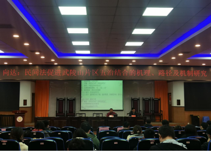 向达副教授从哲学的视角出发,向我们阐述了民间法的处境、五治结合的机理、路径及机制研究这一重要议题。首先,向达老师以“返身求成,无用之用”为题做了一个简要的开场白,做学术要求我们要静下心来思考,沉下心来总结。接着带领大家回溯了“民间法为何、民间法何为”这一概念的历史缘起,民间法是什么,习惯法或是非正式性规范?与国家的制定法有什么样的关系,民间法在当下有什么样的价值,通过步骤方法逻辑以及老庄孔寓言的分析来具体解答以上两问题,借邓正来老师出版的一本名为《中国法学向何处去》作出提问,表明整个人类法学发展的过程无非就是国家的制定法与民间法博弈的过程,隐含了民间法的处境问题。