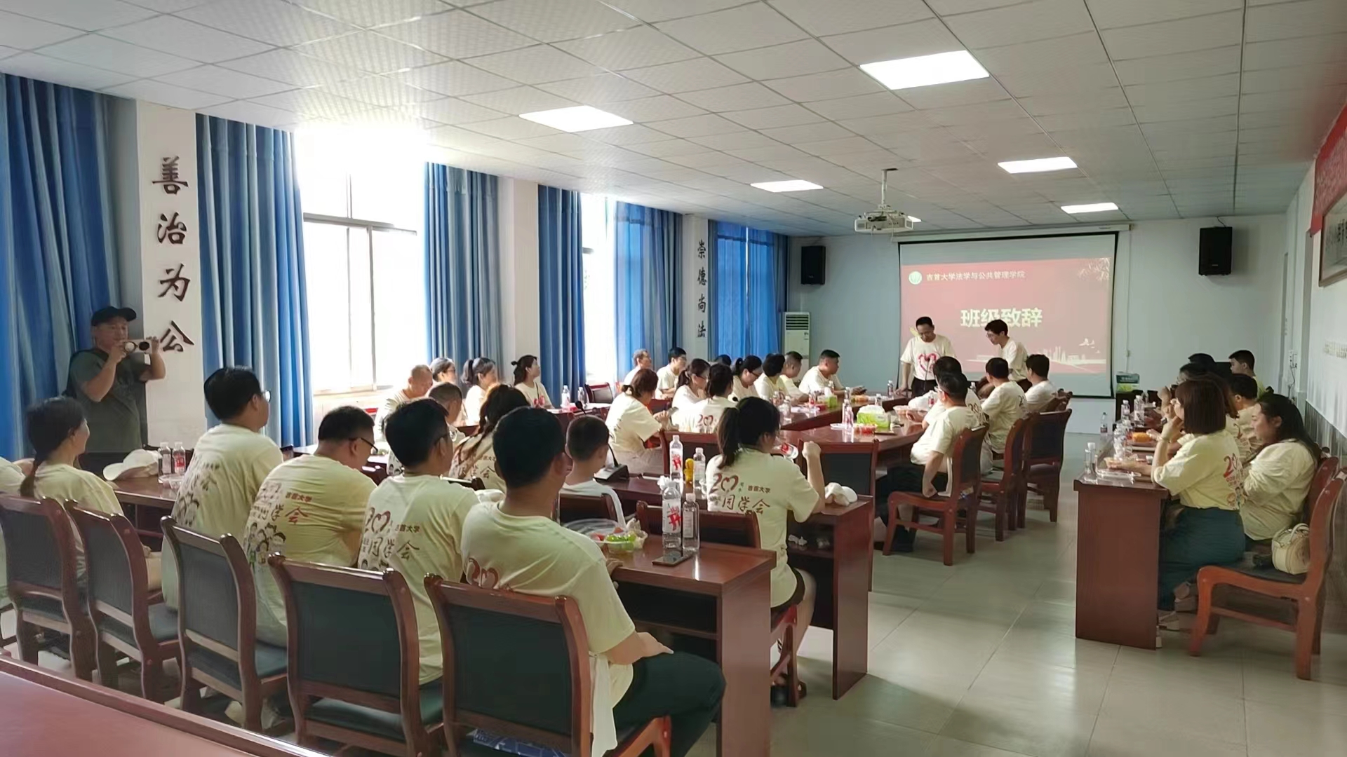 在温馨的气氛中,2000级法三班同学余泽维代表班级表达了学院对校友返校开展活动给予支持的谢意,回顾了在校期间学院教师对2000级三班同学们的培养与照顾温情的一幕幕,衷心的希望学院越办越好,所有的教师幸福安康。