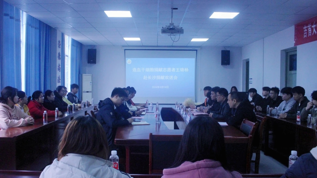 3月14日,mk体育官网于院会议室举行“造血干细胞捐献志愿者王锦杨同学赴长沙捐献欢送会”。湘西州红十字会党组书记、专职副会长杨文波,湘西州红十字会党组成员、副会长张兰,mk体育官网团委副书记周礼,MK体育,MKsports,mk体育官网副书记段武城,湘西州中心血站献血服务科科长廖春香,湘西州红十字会工作人员石英、王志云,mk体育官网团委组织宣传部部长朱珊珊,MK体育,MKsports,mk体育官网团委书记哈米拉提·买合木提,志愿者王锦杨及学生代表参与本次会议。