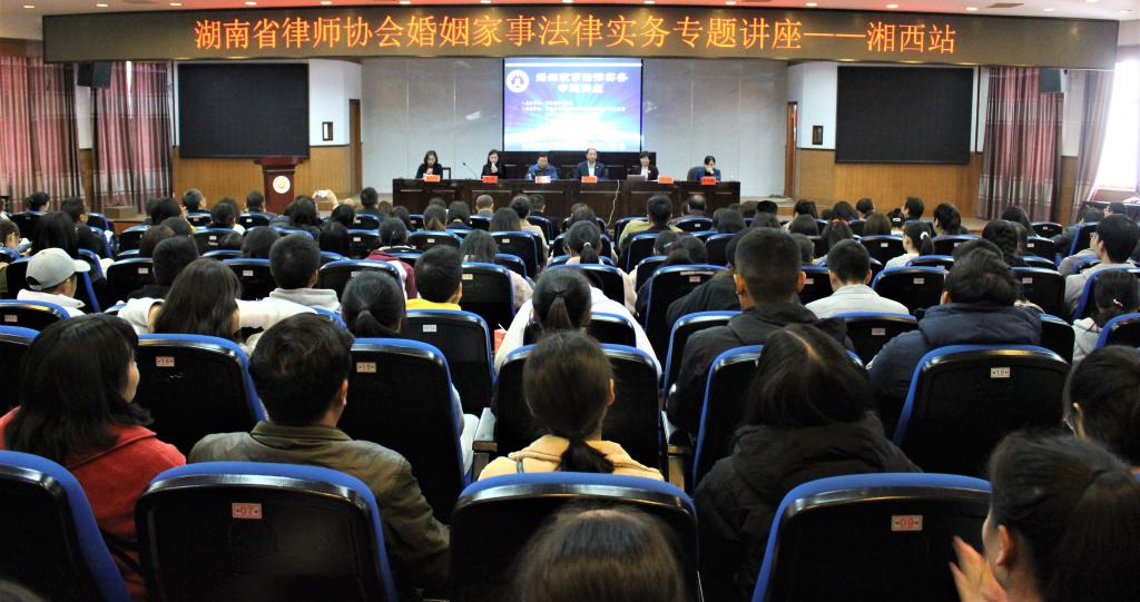 湖南省律师协会婚姻家庭法律事务专业委员会主任万薇、副主任余宇,湘西土家族苗族自治州律师协会会长杨志远、副会长苏红丽,湖南省律师协会婚家委部分委员,湖南省融邦律师事务所邹露璐等执业律师、实习人员,以及mk体育官网党委书记彭献忠等老师学生共同参加此次讲座。讲座由苏红丽主持。