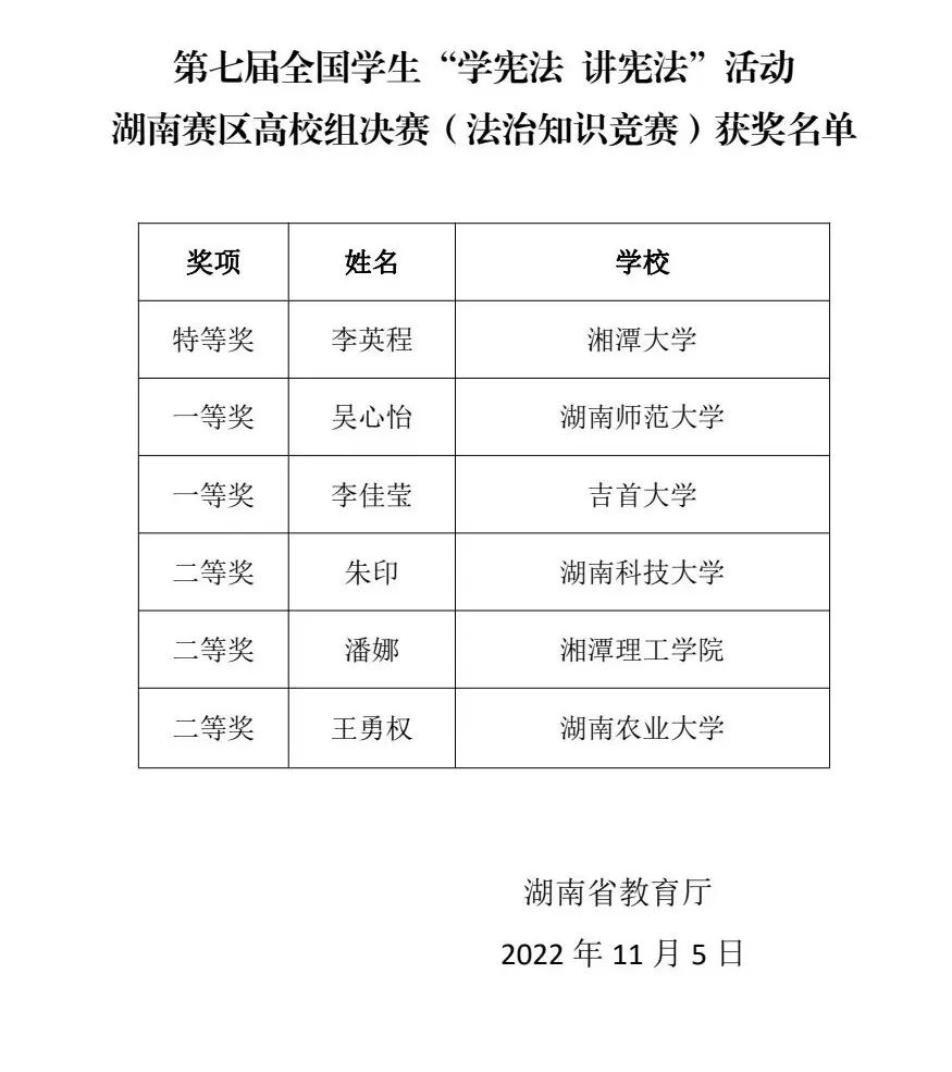 本网讯(通讯员 刘媛 欧阳静)11月5日, “学宪法,讲宪法”活动湖南赛区高校组决赛中的最后一场线上考试顺利结束。经过选手们的激烈比拼,mk体育官网法学专业李佳莹同学在众多选手角逐中脱颖而出,最终取得湖南赛区高校组一等奖的优异成绩。