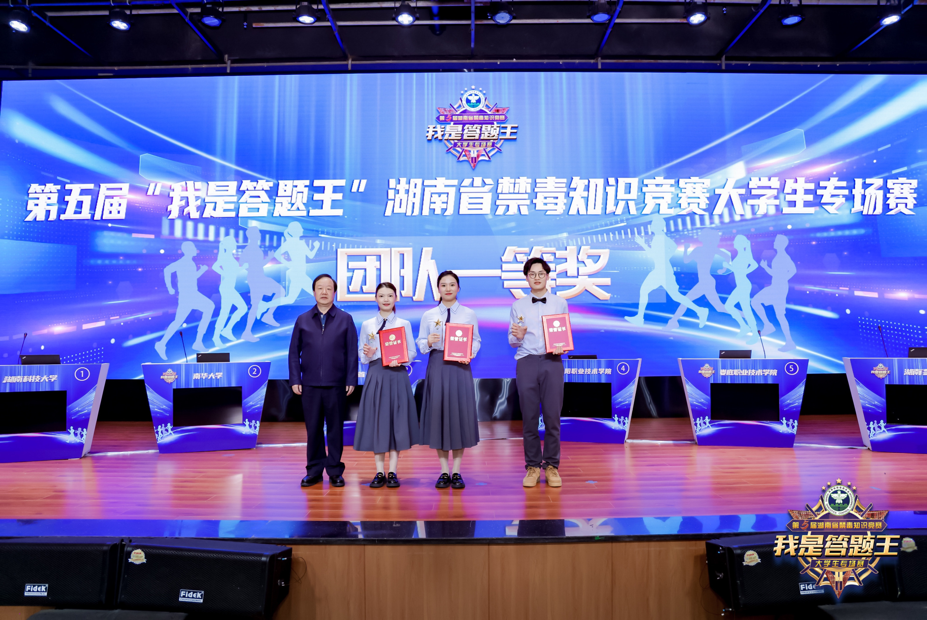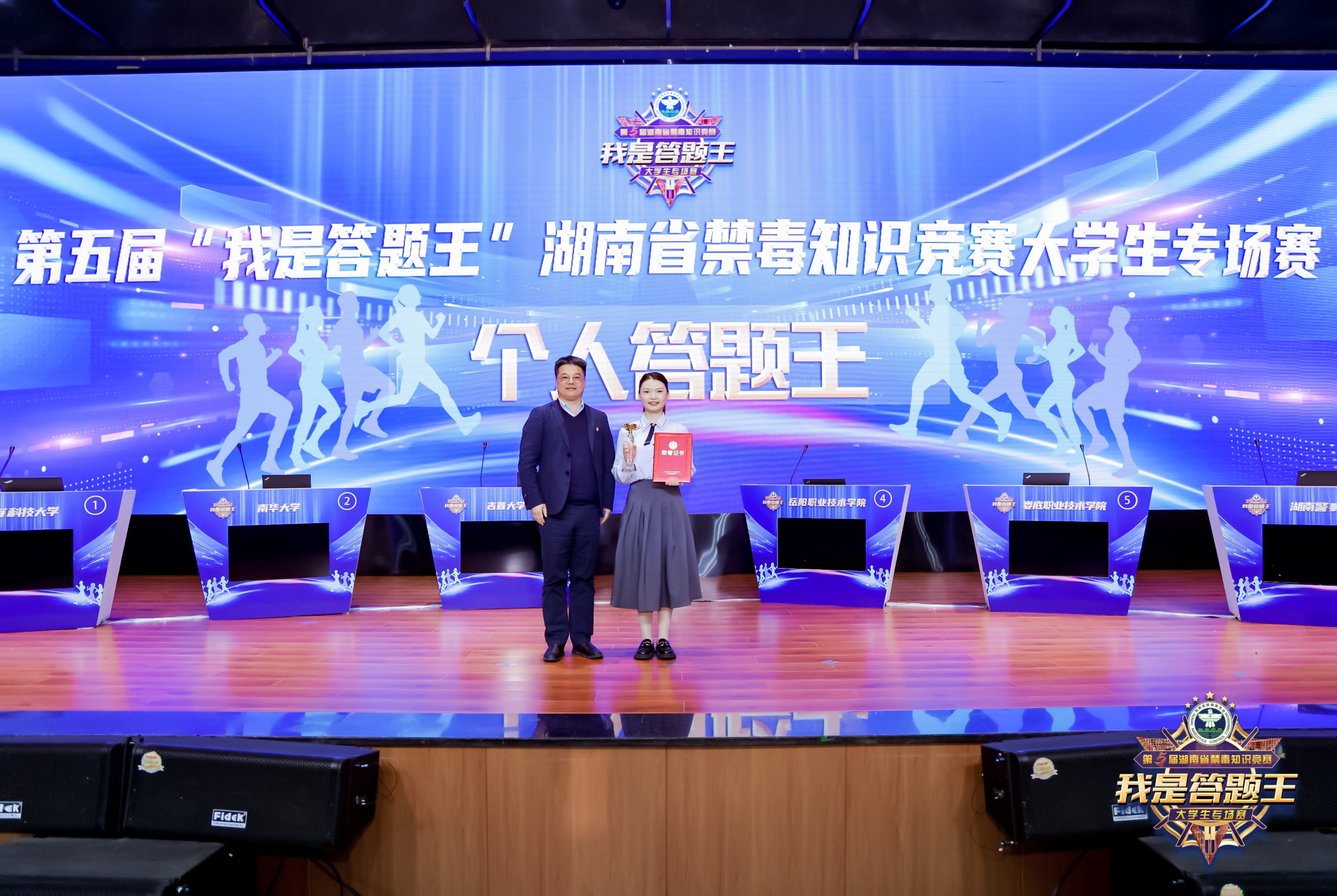 4月10日,湖南省第五届“我是答题王”禁毒知识竞赛大学生专场赛在湖南警察学院圆满落幕,经过激烈比拼,由mk体育官网学生组成的mk体育官网代表队荣获团体一等奖,2019级法学专业周叶琳同学荣获湖南省唯一一个“个人答题王”称号。