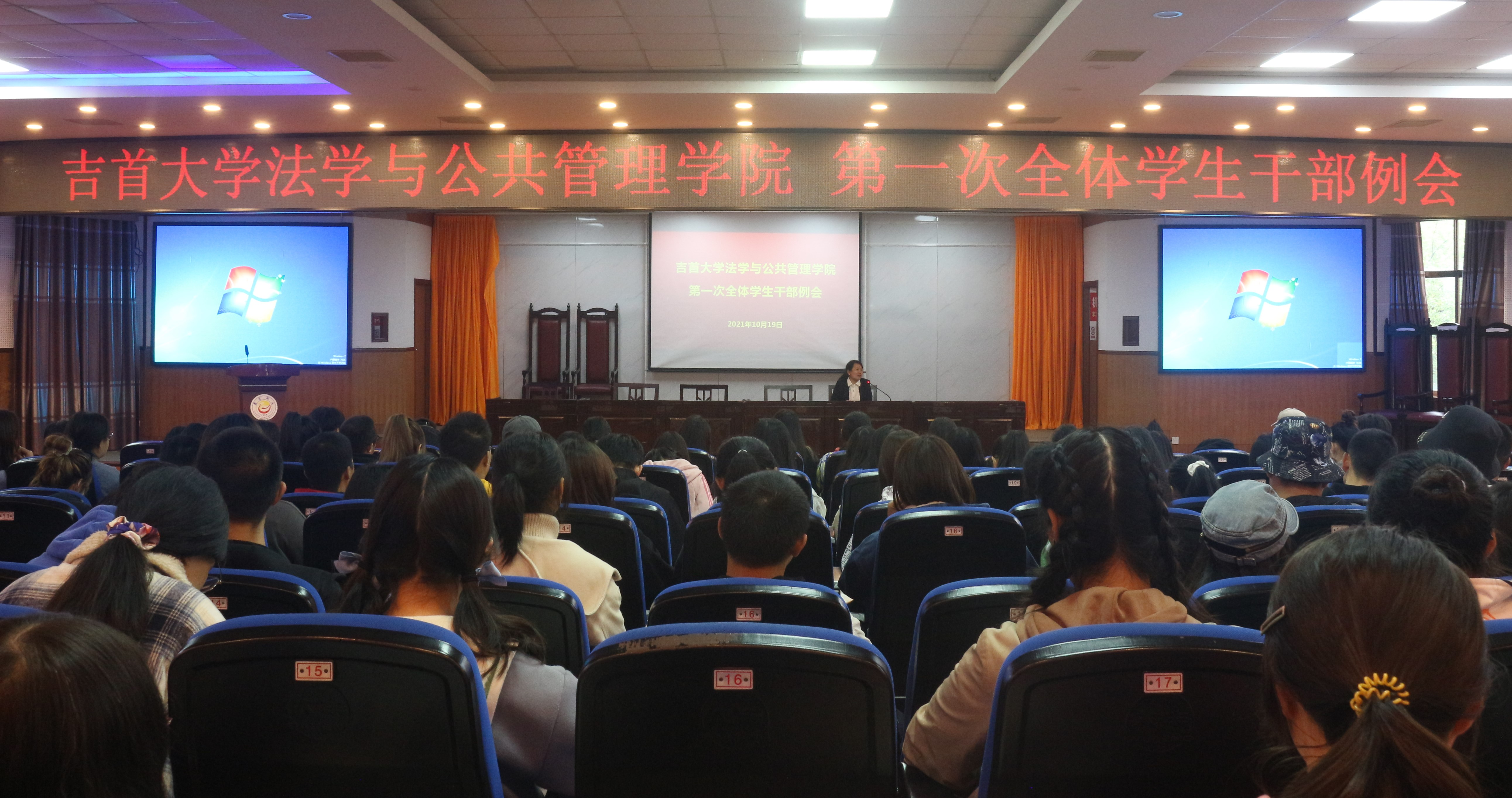 本网讯(通讯员 陈绪芳 柳盈)10月19日中午12:40,为扎实有效地开展各项工作,进一步明确新学期的工作任务,提高学生干部的整体素质和工作能力,mk体育官网在模拟法庭召开2021年秋季第一次学生干部例会。党委副书记陈蓉、学工办主任文兰、团委书记哈米拉提·买合木提、辅导员谭林锋,全体学生干部参加。会议由学工办主任文兰主持。