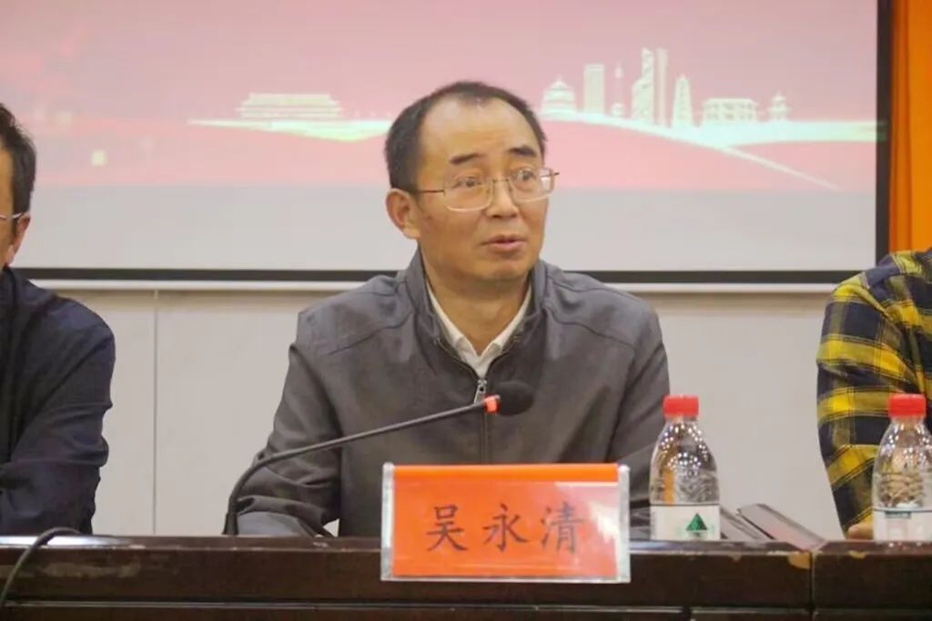 吴永清发言,他提出毕业实习和毕业论文是大学的最后两个环节,毕业生要写好毕业论文,做好实习工作,结合当今社会时代的发展进行选题,严格要求自己,在实习期间认真对待每项工作。