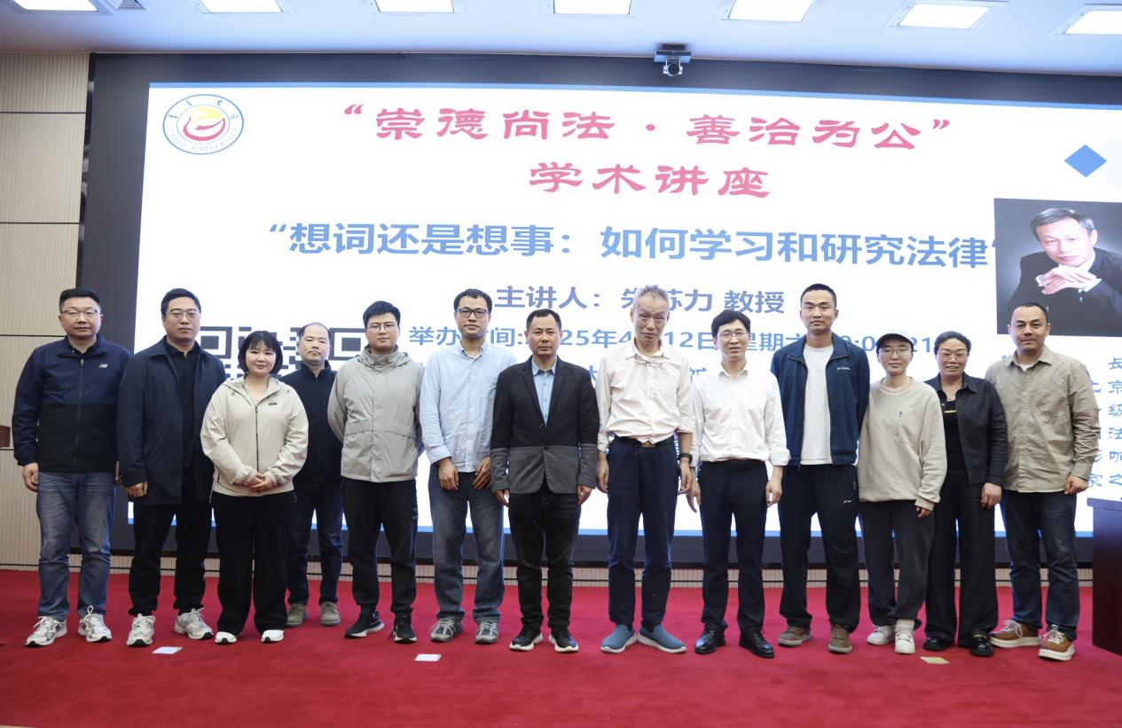 2025年4月12日晚,mk体育官网与科研管理处联合主办的题为“想词还是想事:如何学习和研究法律”学术讲座在砂子坳校区图书馆学术报告厅顺利举行。本次讲座特邀北京大学文科一级教授、长江学者朱苏力主讲,学院院长、教授郑牧民主持。湘西州法律界相关人士、校院领导及众多法学专业师生齐聚一堂,共享学术盛宴。