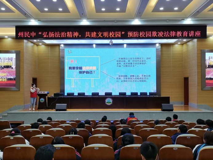 本网讯(通讯员 徐清颖)为有效预防和遏制“校园欺凌”,进一步加强中学生对杜绝校园欺凌的意识,MK体育,MKsports,mk体育官网“典”亮湘西法律志愿服务团于11月7日前往湘西州民族中学开展以“杜绝校园欺凌,共建和谐校园”为主题的法律宣讲活动。本次活动由共青团吉首市委员会主办,“典”亮湘西法律志愿服务团承办。
