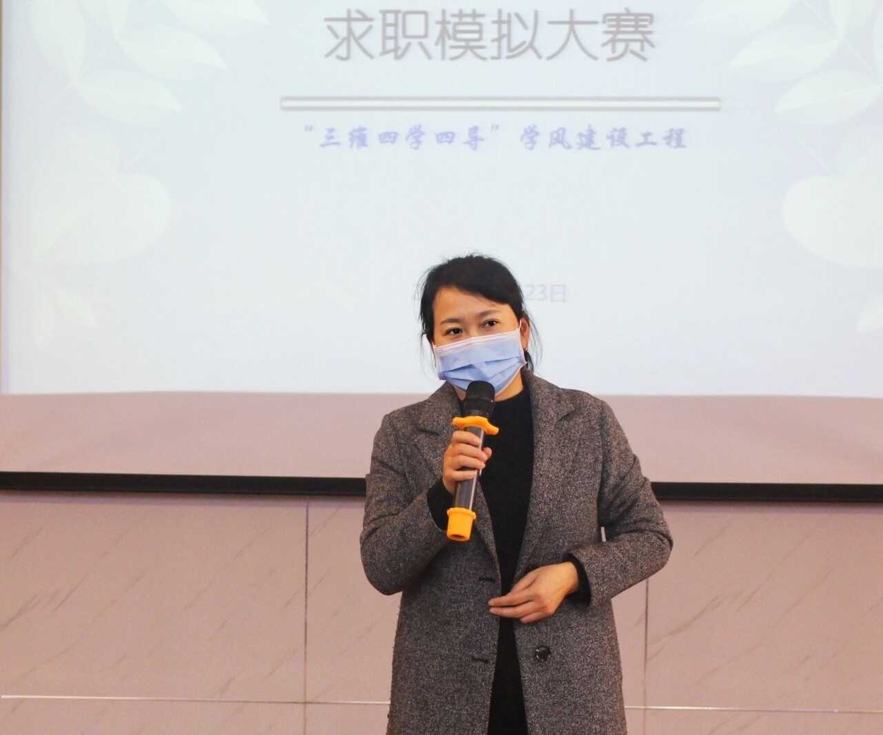 赛前,陈蓉通过分享毕业学生在求职就业中的经验,着重强调了优秀求职演讲和良好求职心态的重要性,建议学生要不断提升自己的求职素养,更好地适应社会需求和工作需求。
