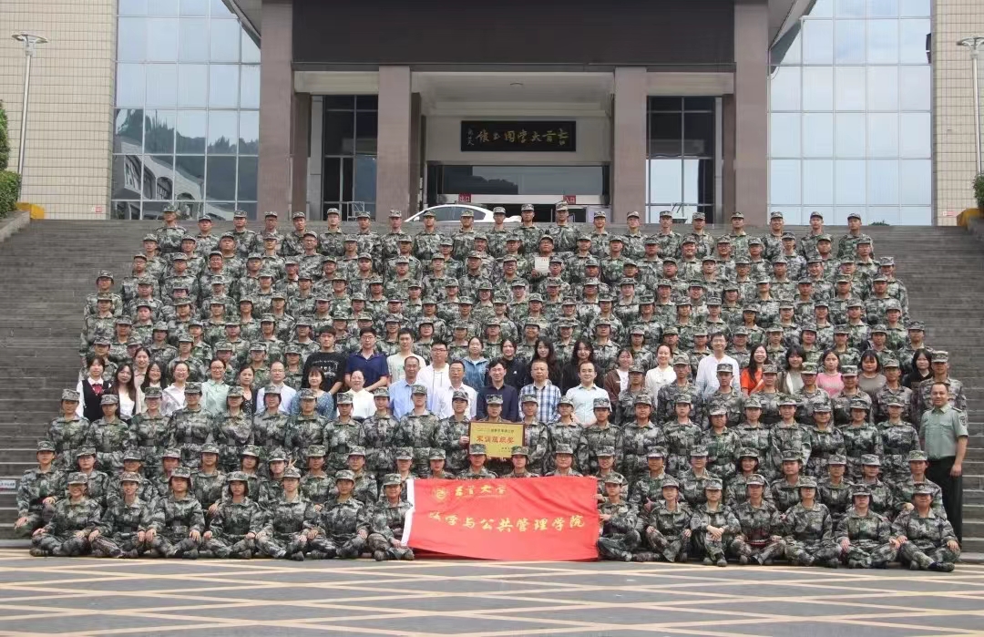 典礼在庄重的校歌下落下帷幕。老师与同学们有序前往我校图书馆前合影留念,为自己充满色彩的军训生活画上句号,开启大学的新篇章。