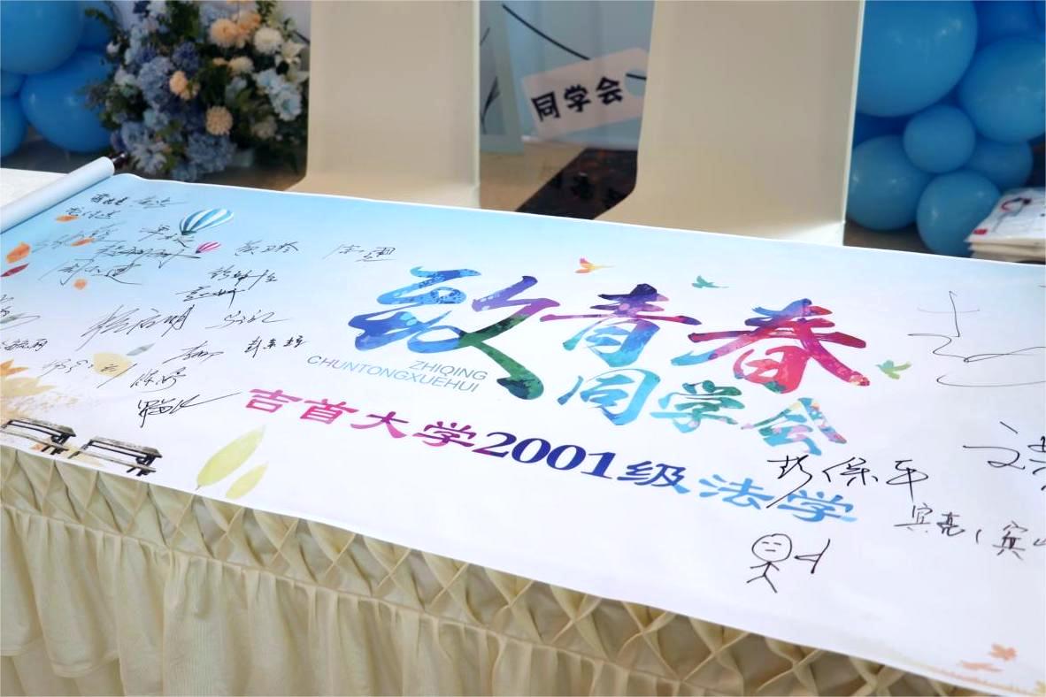 5月1日下午,校友们陆续抵达吉首凯莱酒店,正式开启返校之旅。签到处温馨雅致,老同学热情畅聊,纷纷在签名画布上写下自己的名字,领取定制文化衫、杯具等纪念礼品,让每一位校友在回归之初便感受到母校的温暖与牵挂。