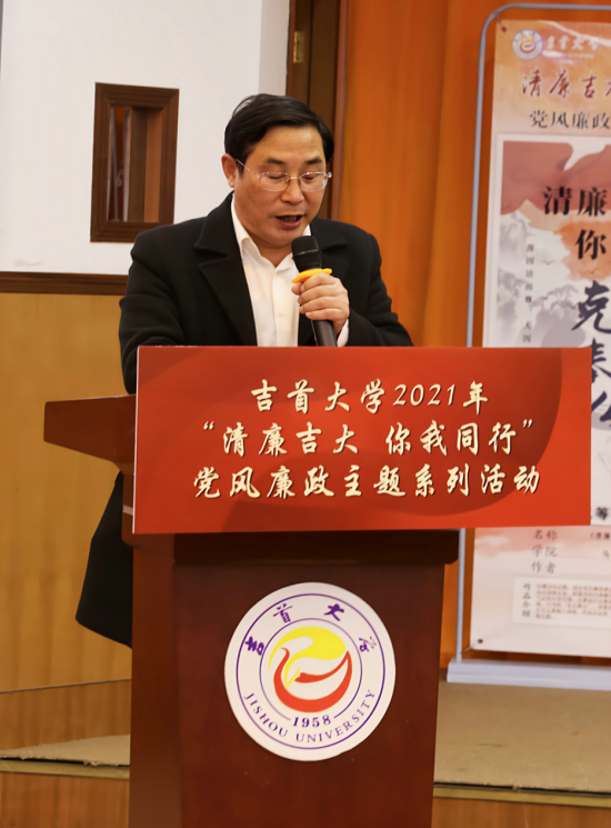 本网讯(通讯员 许军 陈绪芳 黄思榕)为深入学习贯彻习近平总书记关于党风廉政建设重要讲话精神,贯彻落实全面从严治党要求,弘扬清正廉洁的优良作风,营造高效和谐积极的校园文化氛围,11月18日—11月30日,mk体育官网2021年“清廉吉大 你我同行”主题系列活动顺利开展。活动邀请了mk体育官网党委委员、党委宣传部部长罗惠缙,组织部常务副部长、党校常务副校长李洪雄,MK体育,MKsports,mk体育官网党委书记彭献忠,纪委监察专员办副主任胡罡,纪委办公室副主任王映,党委组织部副部长周琴,校团委副书记张宝娣担任评委。