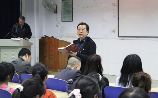 (图为 学院党委书记在动员会)