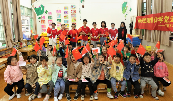 与此同时,法学与公共管理学院联合国际教育学院、药学院在吉首市职专附属幼儿园开展“哥哥姐姐带你学党史”红色教育活动。学院研究生党支部书记任倩老师带领学生党员和入党积极分子将党史学习教育融入实践,努力践行党史学习从娃娃抓起。他们根据孩子年龄特点设计具体的主题教育内容,利用图片、绘画,视频等方式带着孩子们认识国旗,并介绍国旗基本知识授课内容;通过观看视频短片、诵读红色童谣、传唱革命歌曲等形式,引导幼儿感受伟大祖国的辉煌成就,用最朴实的方式礼赞祖国;通过画国旗、五角星上色,拼红旗,找国旗等游戏,在游戏中强化关于国旗记忆;用图书、玩具等红色教育素材充实园区的功能区域,让红色教育内化到孩子的日常学习和生活,在小朋友心中埋下爱国的种子。