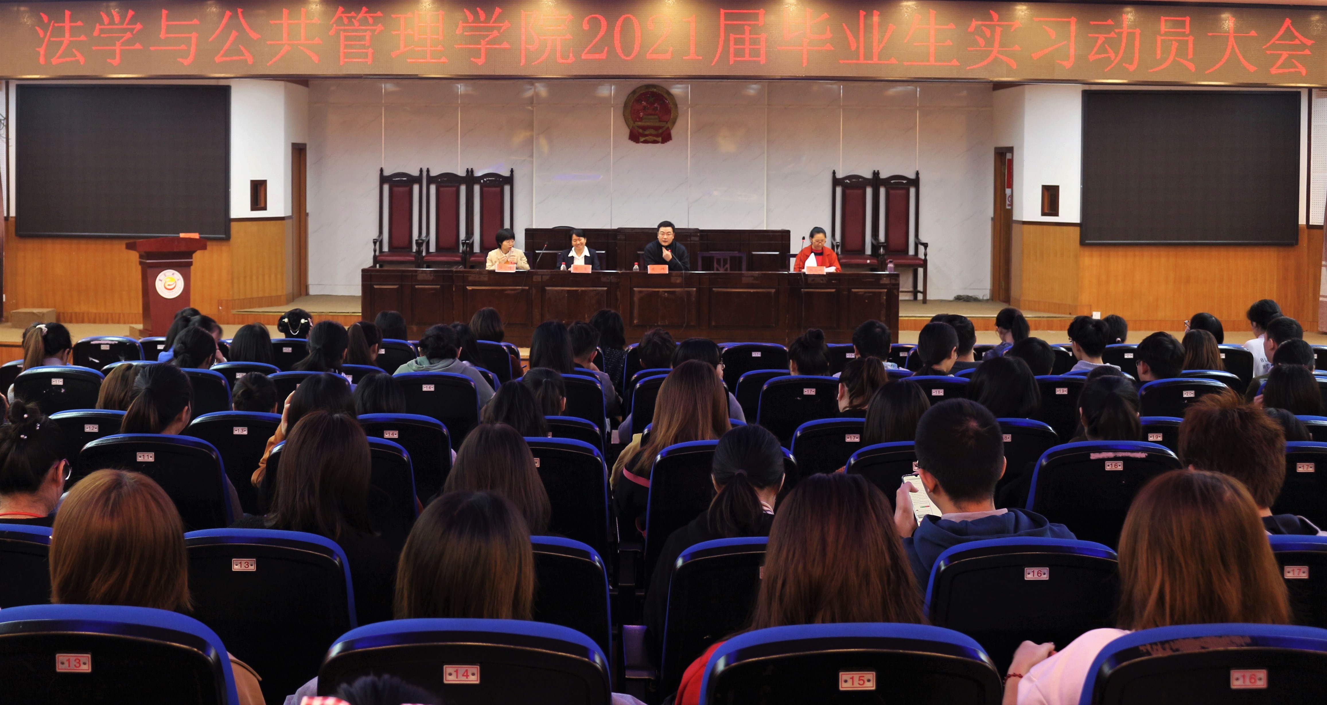 为了落实毕业生实习工作,引导毕业生积极主动实习就业,10月28日,mk体育官网在模拟法庭召开2021届毕业生实习动员大会。mk体育官网党委副书记陈蓉、副院长黄炜、教务办秘书周彦君、团总支书记任倩出席此次大会,21届全体毕业生参加此次大会。