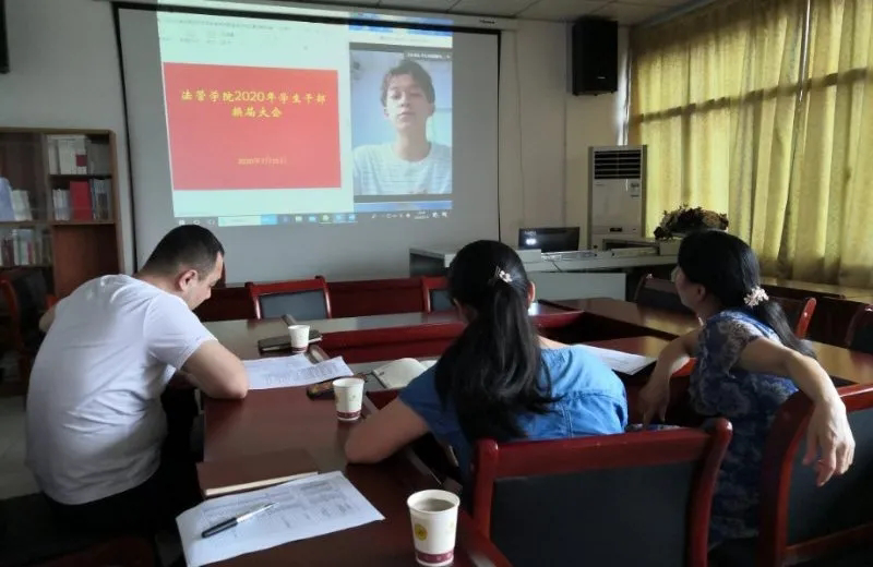 本网讯(通讯员 楚文成 罗慰)过去一年,mk体育官网四大部门以服务全院师生为己任,积极开展各种活动,圆满完成各项任务。7月15日,mk体育官网举行第十届学生干部线上换届面试大会,mk体育官网党委副书记陈蓉,学工办主任文兰,团总支书记任倩,辅导员哈米拉提•买合木提作为面试评委与会。mk体育官网学生干部参与面试选拔,会议由秘书处杨佳霖主持。