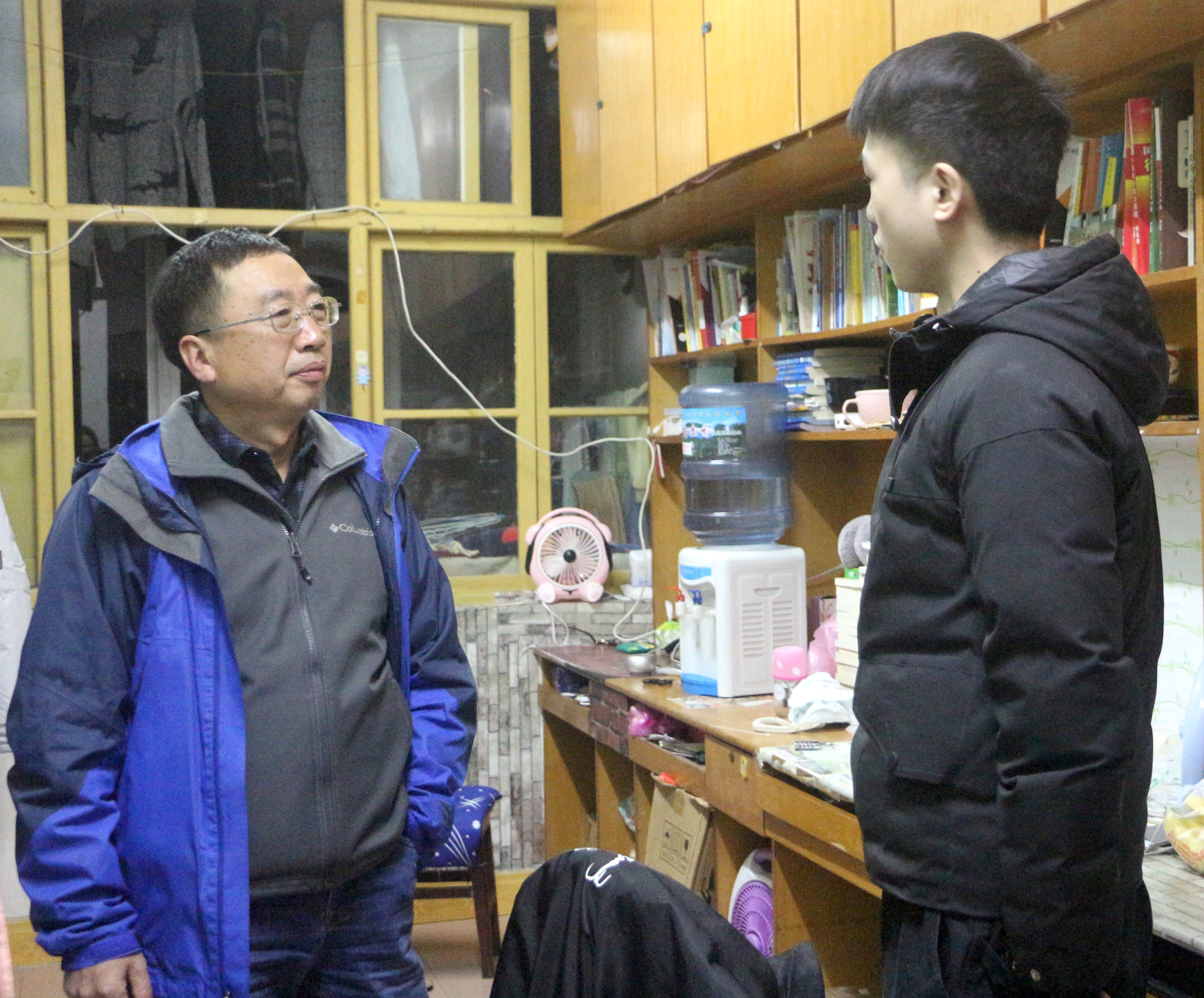 各位老师深入各个寝室探访,对大功率电器、乱接电线、潜在危险性物品等安全隐患进行了逐一排查,并提醒同学们禁止使用违规电器,强调了保证用电安全的重要性。期间,各寝室同学积极配合,寝室干净整洁,无违规电器。老师们也对同学们学习和生活表示了关心,询问了大四学生关于考研、司法考试及工作实习等相关情况。