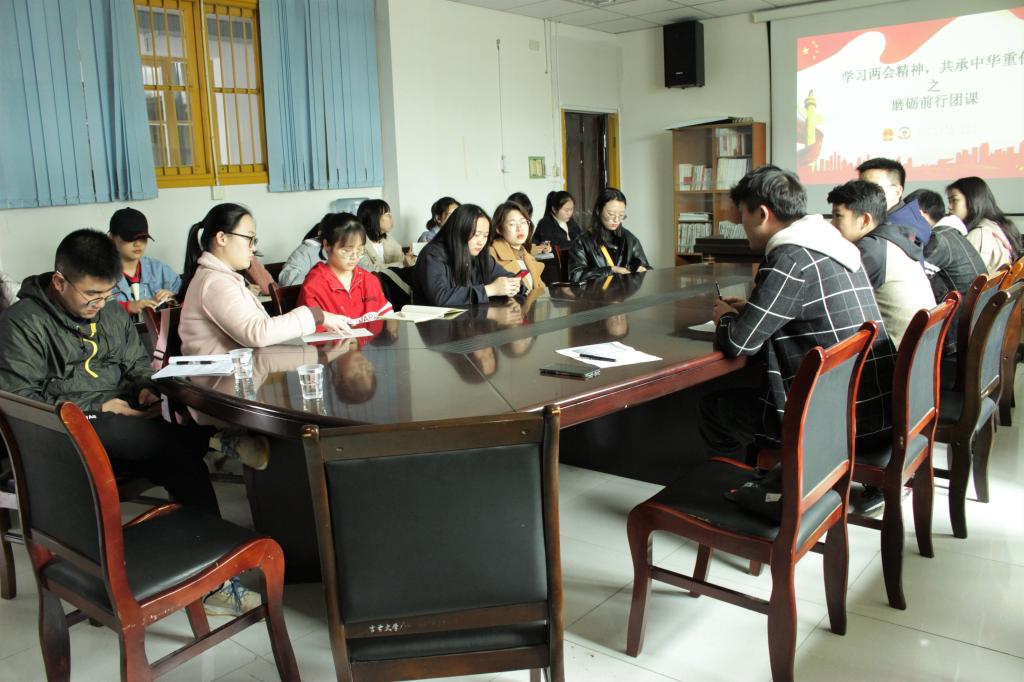 本网讯(通讯员 蒋珊、熊澜)为推动广大同学聚焦时政、学习“两会”精神、增强政治素质,3月26日中午,mk体育官网在院会议室开展“学习两会精神,共承中华重任”主题团课活动。mk体育官网学工办主任段武城,团总支书记任倩,16、17、18级各班团支书以及团总支全体成员参加此次团课。团课由团总支干事李志伟主讲。